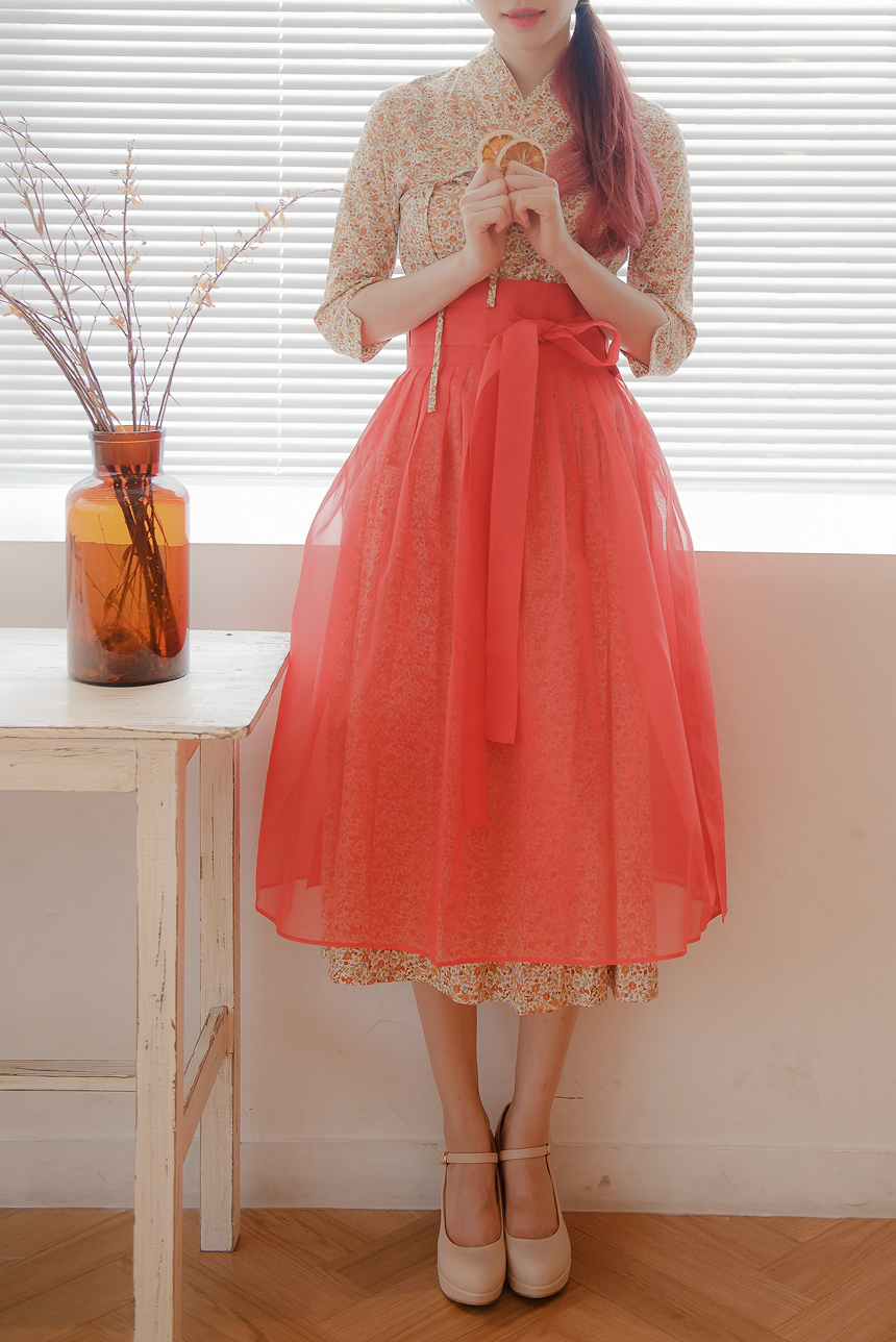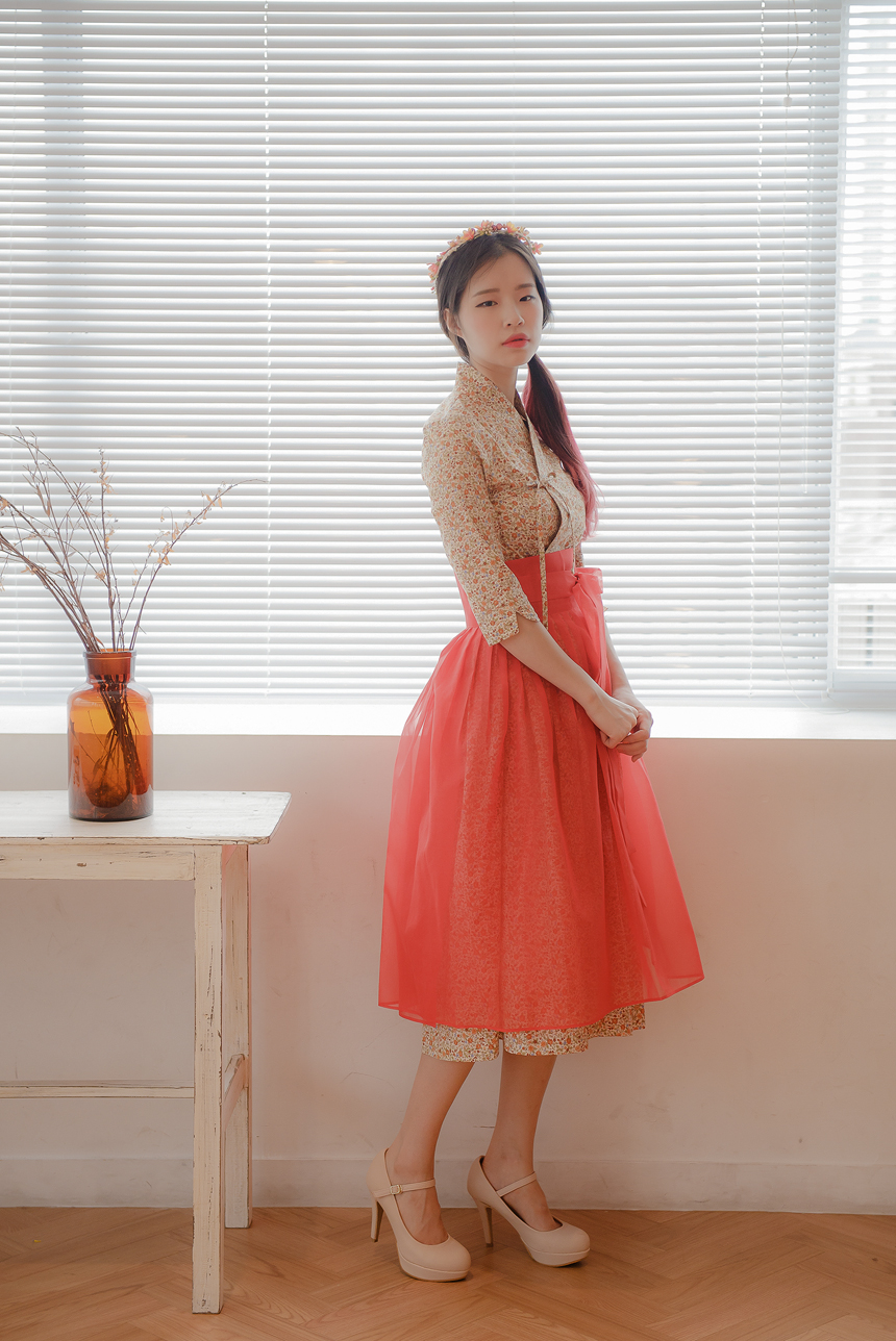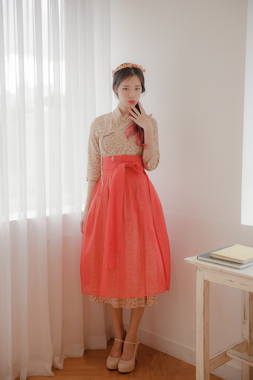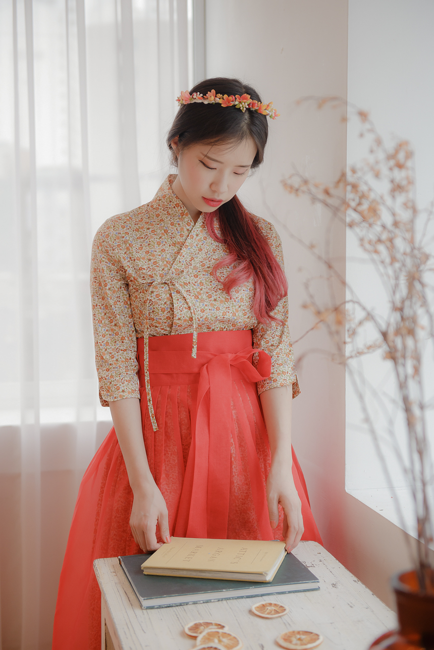 꽃닮 철릭원피스 허리치마 세트 홍시7부