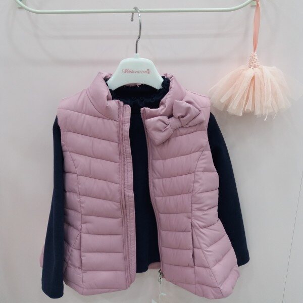 웰론충전재를 사용한 베스트입니다.밑단에 후레아 라인으로 보다 러블리한 룩을 완성합니다.넥에 리본이 포인트가 되어줍니다~
