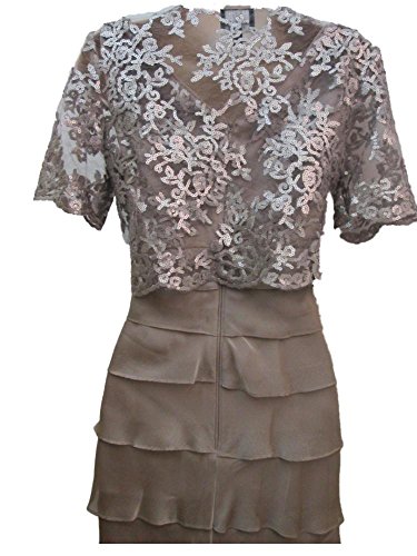 Gorgeous dress.Beautiful construction and so flattering on. The color is like a putty blush. The beading has a silver tint to it. Really gorgeous!
