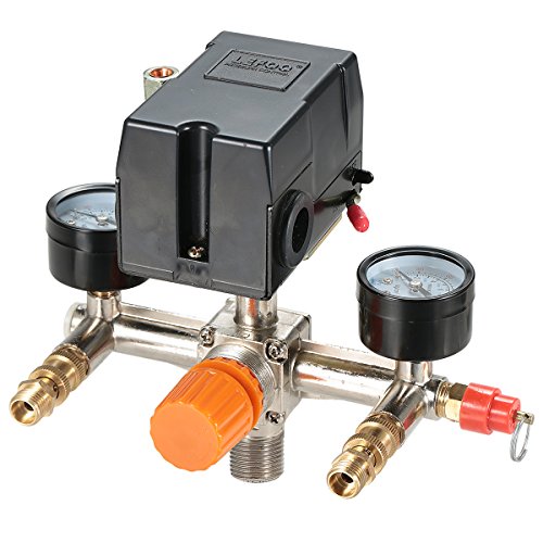 Secbolt Pressure Switch Manifold Regulator Gauges Air Compressor Parts Control Valve 90-120PSI Horizontal Switch