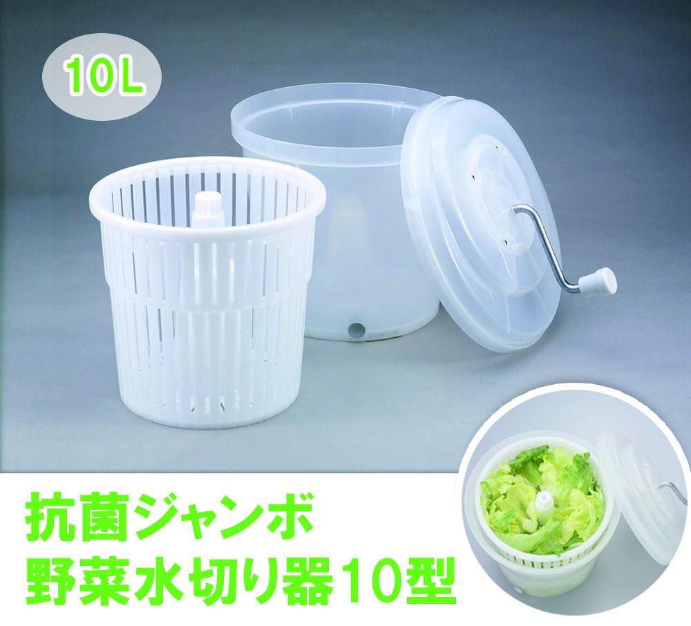 業務用に最適!!10L大容量タイプの野菜水切り器です。抗菌加工が施されており、衛生的にお使いいただけます。 |
