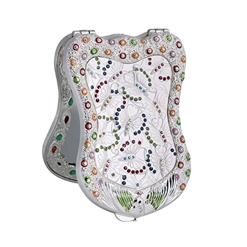 Damara Women's Crystal European Style Butterfly Silver Cosmetic Mirror