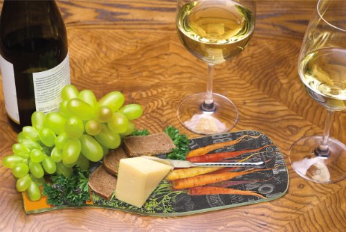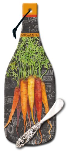 CounterArt Wine Bottle Shaped 12-1/2-Inch Glass Cheese Board with Spreader Knife, Chalkboard Veggies
