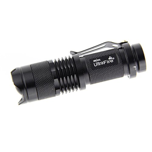 Ultrafire® 7W 300LM CREE Q5 LED 3-Mode Mini Black Shell Portable Flashlight Torch Adjustable Focus Zoom Lamp -Red Light