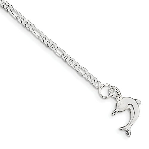 Sterling Silver 10inch Hollow Polished 3-Dimensional Dolphin Anklet 10" (2mm)