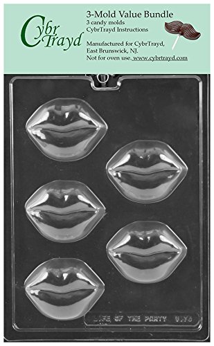 CybrTrayd V175 Lips Cookie Chocolate Candy Mold, 3-Pack, Clear