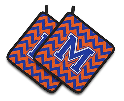 Caroline's Treasures Letter M Chevron Orange & Blue Pair of Pot Holders CJ1044-MPTHD, 7.5HX7.5W, Multicolor