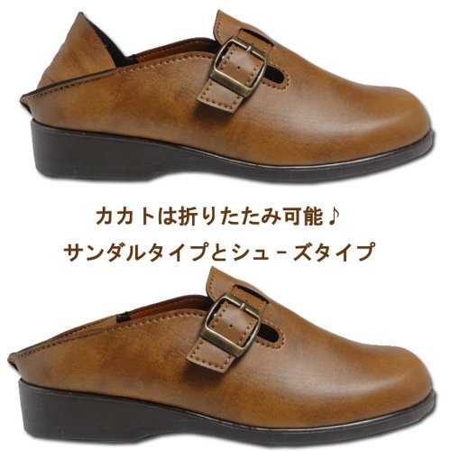 -. Feature : カカトは折りたたみ可能。サンダルタイプとシューズタイプ。 / サイズ/22.0cm~24.5cm(0.5cm刻み) / カラ-/ブラック、キャメル、ブラウン / 製造国/日本 / ヒ-ル高さ/約3cm   重量/約180g(23.0cm片足)