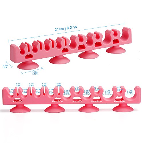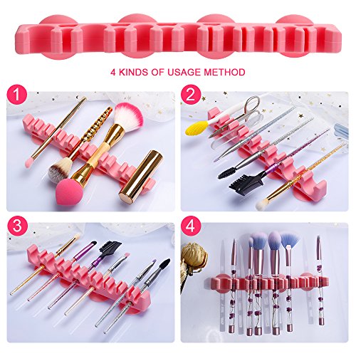 - Brand new high quality, made of silicone, can be used for a long time, never worry about the makeup brush holder will be broken, what's more, it won't scratch your brush handle, also due to it's stable, the brushes will not drop down easily; different sizes of the makeup brush holder's holes suit for different sizes of makeup brush, designed to hold all your beauty essentials, from tweezers to blush brushes
