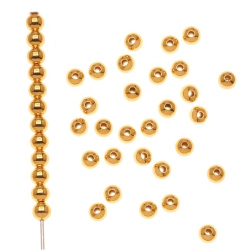 1000-Piece Round Beads, 3mm, Gold Plated