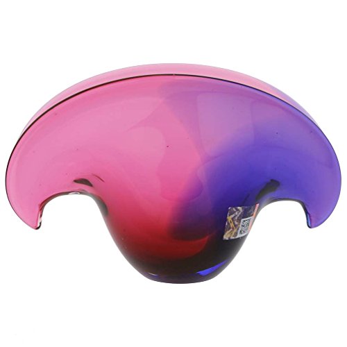 Bringing to mind the mystery of Venetian shores and sporting deep vibrant colors, this clam-shaped centerpiece represents the unique artistic heritage of Murano Glass. Born in Venice centuries ago from the desire for beauty, endless search for perfection in craftsmanship, talent, and passion, Murano Glass has since conquered the world as the standard of style and beauty in modern decorative art. This Murano bowl, with its unique nature-inspired design and a mix of rose and blue hues, brings Venetian ambiance into your house and makes you almost feel the exhilaration of witnessing a gorgeous Venetian sunset. - Measurements: this bowl is 8 inches wide, 4 inches deep, 5 inches tall. The weight is 2 lbs.