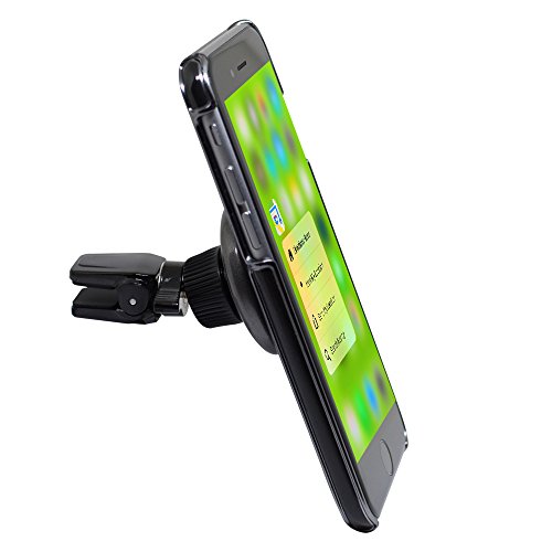 UNIVERSAL Mobile Smartphone Car Phone Mount can clamp and grip onto any flat air vent blade. Provides a strong magnetic hold for any smartphone including Apple iPhone, Android, LG, Google, HTC and more