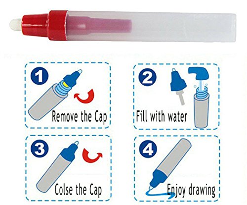 Studio : Doodle Mat Publisher : Doodle Mat Binding : Toy Product Description Aqua Doodle Mat 4 Color Children Water Magic Drawing Book Mat Board Magic Pen Doodle Kids Educational Toy Gift 31.5" x 23.6" Description: Material: non-woven, polyester fiber Suitable Age: above 3 Aged Item Dimensions:80X60cm (31.5"X23.6") Maintenance: You can wipe the surface of the canvas with a damp cloth, then air-dry it. How to use: Before using, it is better to put the head of painting pen into the water to soak for 2-3 hours, then fitted it with water to use, it will not appear dripping phenomenon, and the reason for drip phenomenon of painting pen occurs, mainly due to the head of pen has no fully expanded. 1.Unscrew the head of pen (positive direction unscrew) 2. Fitted with water from pen body (reused, about 10 minutes after drawing, content will automatically disappear, can be unlimited re-use) 3.Draw your favorite pattern on the water canvas.