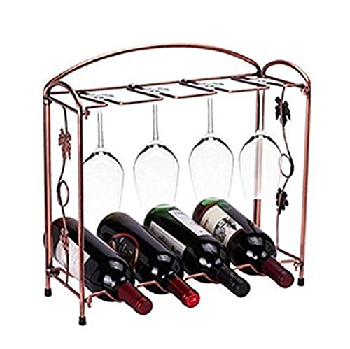 Miniway 4 Wine Bottles / 8 Wine Glasses Countertop Bronze Stainless Steel Tabletop Wine Glass Drying Folding Rack Stand Gift