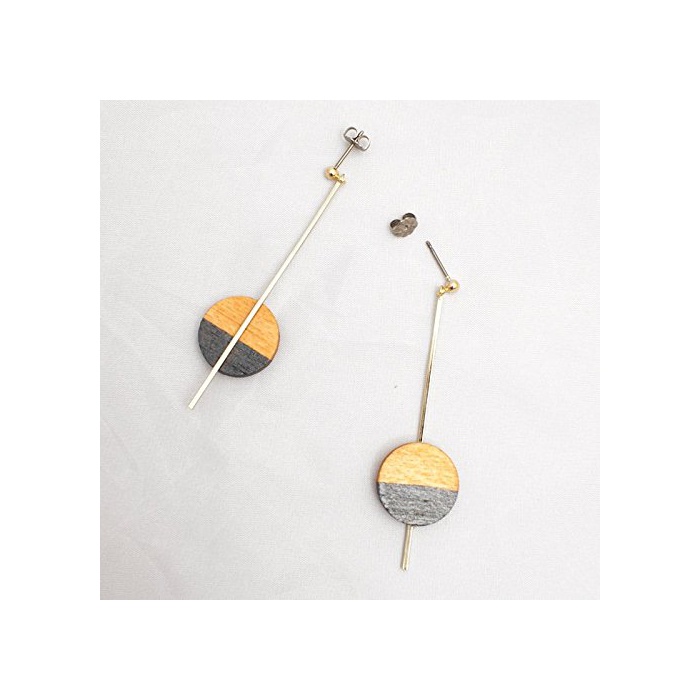 [이 로리 응원] IROLIER 퍼즐 우드 환피어스(귀걸이) 블랙 16M008PBK
