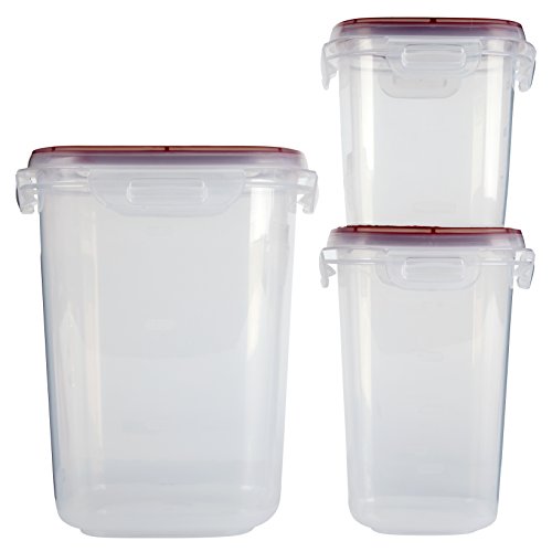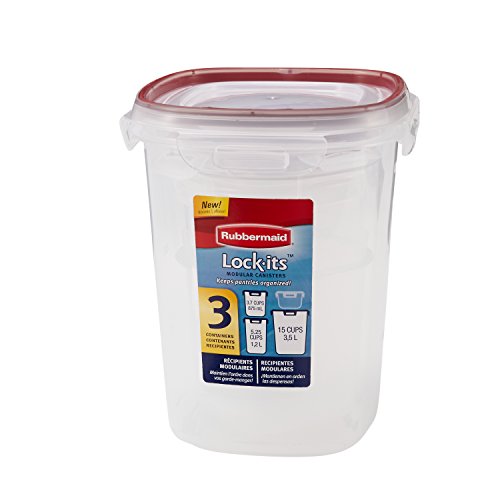 Rubbermaid FG7L0600CIRED 3-Piece Lock Its Canister, Includes 1- 3.7 Cup, 1 - 5.25 Cup, and 1 - 15 Cup Canister