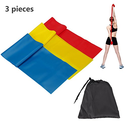 LEBE 6.6 ft. Long Flat Resistance Bands 3 in 1 Set,Home Gym Work Out Fitness Equipment For Physical Therapy, Pilates, Stretch, Yoga, Strength Training Workout. Light, Medium and Heavy Tension.