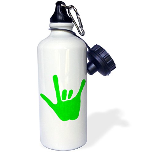 3dRose wb_15301_1 "Love Hand Sign Language in Green" Sports Water Bottle, 21 oz, White