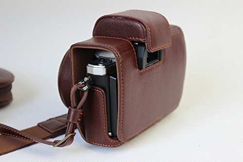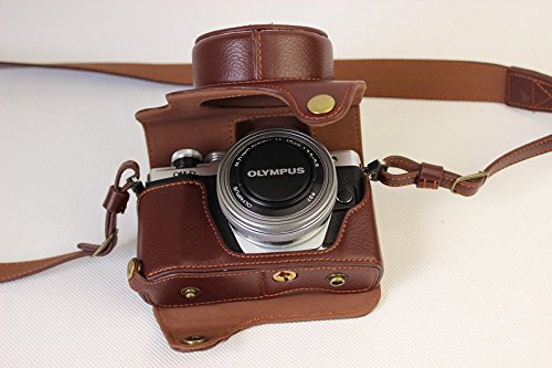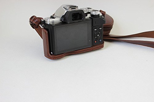 MoreGift4U Vollstandiger Schutz Bottom Offnungs Version Protective Echtes Leder Kamera Tasche mit Stativ-Design-kompatibel fur Olympus OM-D E-M10 Mark 2 EM10 Mark II mit 14-42mm F3.5-5.6 EZ-O