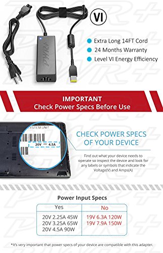 Pwr+ 90W 65W Extra Long 12 Ft Charger for Lenovo Ideapad Yoga 2 11, 11s, 13, 2 Pro, 260; Ideapad 300 500 500s Z410 Z510 S210 S500 S510p U330 U430 U430p U530 V110 V310; Flex 3 2 14 15D 15 10; Edge 15; 2-1580; ThinkPad ADLX45NCC2A ADLX45NLC2A ADLX45NLC3 ADL