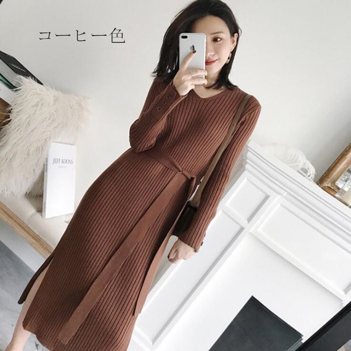 【キーワード】ニットワンピース ロング丈 マキシワンピース ニット レディース 長袖 Vネック ワンピース 秋 冬 ロング丈ワンピース スリットワンピース ベルト付き キレイめ 大きいサイズ ゆったり ワンピース チュニック カジュアル 秋ワンピース タートルワンピース ロングニットワンピース お洒落 ママワンピース 着痩せ 20代 30代 40代 50代 60代 ファション【生産地】:中国【素材】:ニット【カラー】:黒 コーヒー色 ベージュ※お客様ご使用のPC環境により商品画像のカラーが多少異なる場合があります。仕入時期により多少デザインなど異なる場合があります。ご了承ください。【サイズ(単位cm)】:S:バスト80-114 肩幅36 袖丈52 着丈95M:バスト84-118 肩幅37 袖丈53 着丈96L:バスト88-122 肩幅38 袖丈54 着丈97XL:バスト92-126 肩幅39 袖丈55 着丈98※サイズは人の手によって測っているため、実寸は商品によって(2-3 cm前後)に誤差が生じる場合がございますので、予めご了承くださいませ。