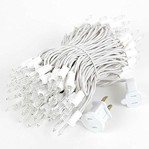 Novelty Lights presents this commercial grade 22 gauge wire Clear Christmas mini light set that has 100 lights spaced 4" apart and is 34 feet long. Our 4" spacing is shorter than standard 6" spacing giving your lighting application a more dense look. Each set comes with 2 replacement bulbs, 1 flasher bulb, and extra 2 fuses.