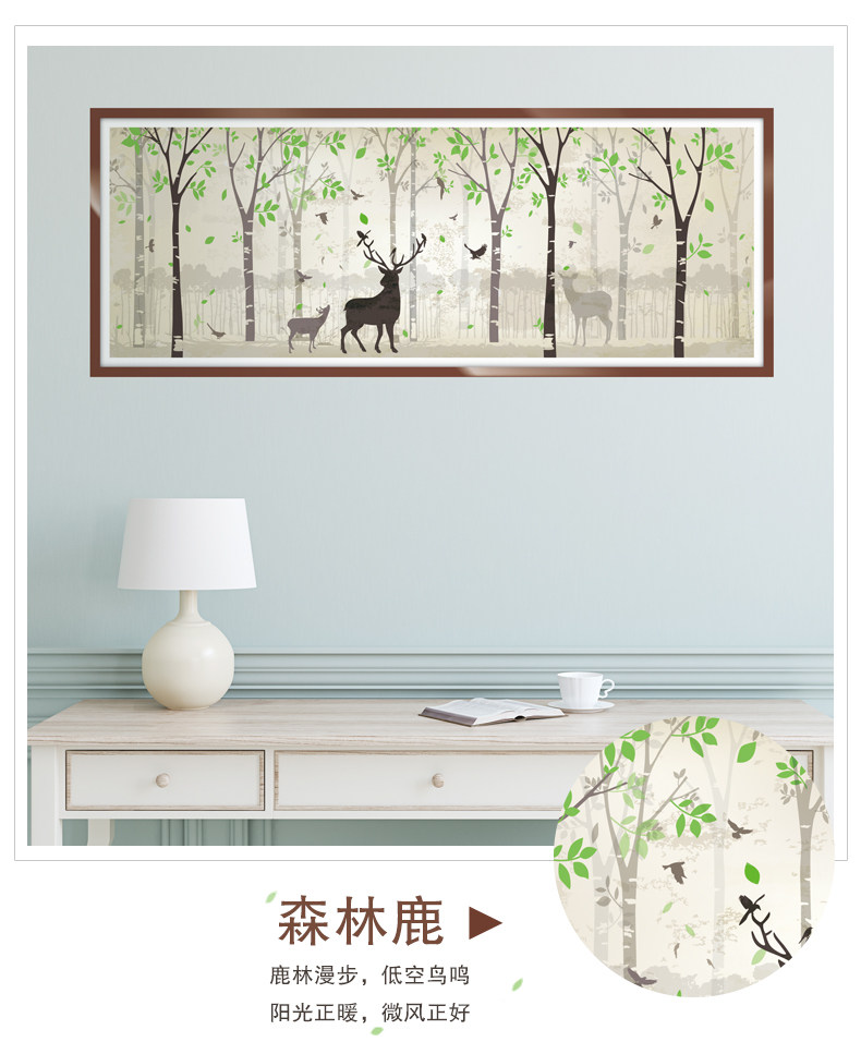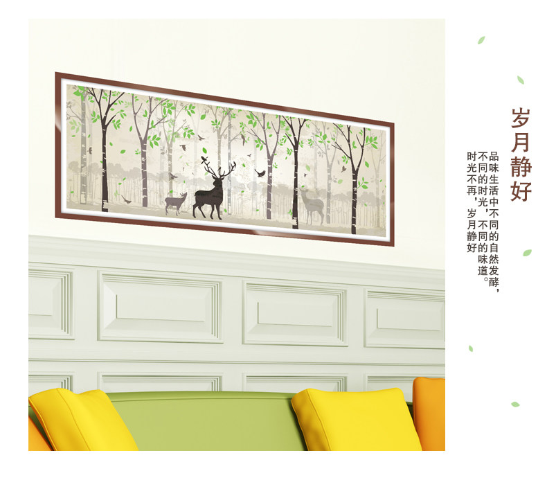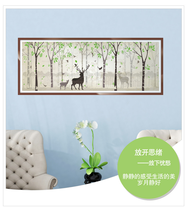 墙纸壁纸自粘 客厅背景墙贴纸装饰壁画贴纸海报纸贴画 森林鹿画框