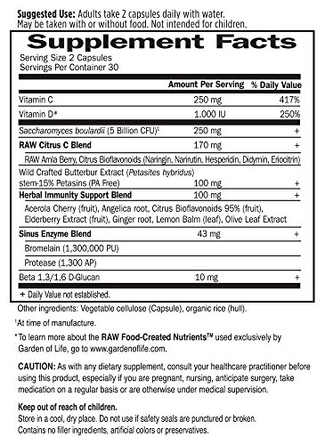 BUTTERBUR: This sinus supplement includes 100mg Wild Crafted Butterbur Extract for immune system support
