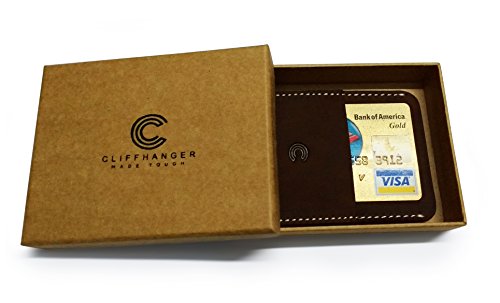 -. Binding : Apparel -. Brand : Cliffhanger Leather -. Color : Brown -. Department : mens -. Feature : CARRY ALL YOUR NECESSITIES WITHOUT THE BULK: The unique design allows you to carry all your vital credit and ID cards without the large size and weight of a standard billfold wallet. Features an additional interior pocket to carry small amounts of cash. Weighs just 1.6oz and is thinner than any smartphone / PREMIUM FIRST LAYER COWHIDE: Unlike inferior wallets which are made of multiple layers of low quality leather, the executive Cliffhanger is built from first layer cowhide for a quality finish that only gets better with age. / FITS IN YOUR FRONT JEANS OR JACKET POCKET: The minimalist slim design allows the wallet to fit seamlessly where others can't. No more bulky wallets leaving unsightly bulges in your pants. A safer way to carry your day-to- day necessities. Keep your vital cards close by, you no longer have to leave your wallet in your back pocket making you a P.R.Ime target for pickpockets and thieves / IDEAL GIFT FOR MEN: The sleek wallet is beautifully packaged in an elegant presentation box and linen pouch. A perfect gift for the modern man in your life. / A MINIMALIST WALLET SOLUTION OR YOUR MONEY BACK: We're so sure you'll love your new Cliffhanger wallet that we'll let you try it risk free for 30 days. If you're not completely satisfied, simply return the wallet to us for your money back - no questions asked -. IsAdultProduct : 0 -. Model : CLFH0001 -. MPN : CLFH0001 -. PartNumber : CLFH0001 -. ProductGroup : Apparel -. ProductTypeName : ACCESSORY -. Size : One Size -. Title : CLIFFHANGER Minimalist Leather Card Sleeve Wallet - Mens Front Pocket Card Holder Slimline Executive Design with First Layer Cowhide - Interior Pocket for Cash