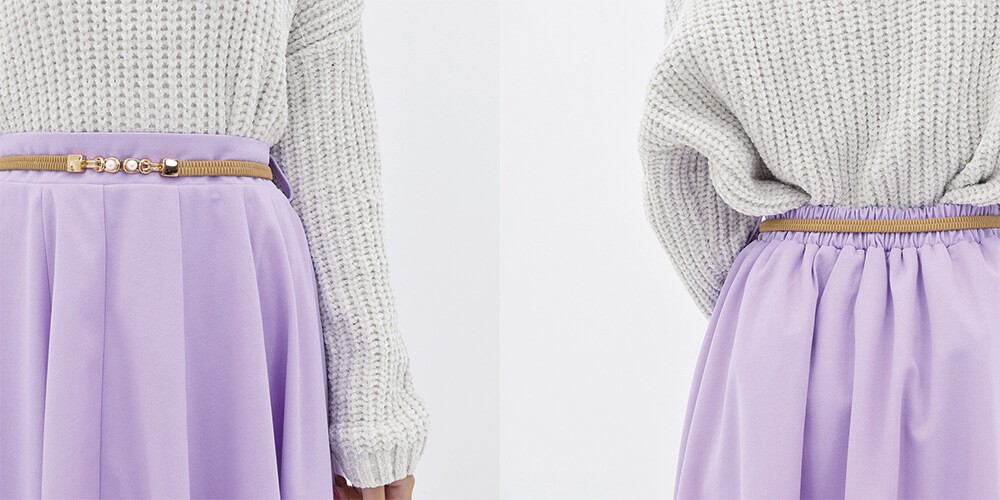 やわらかい素材のためスカートに動きが良く出て、明るい印象にまとまります。