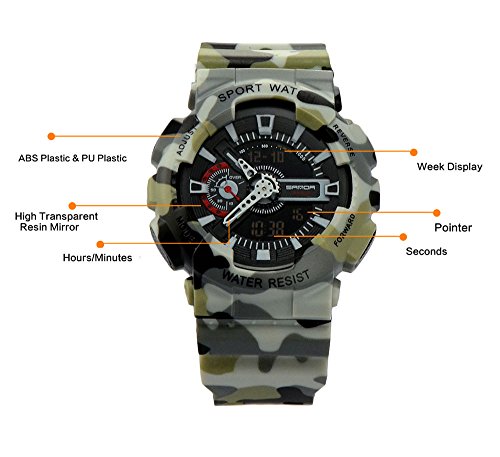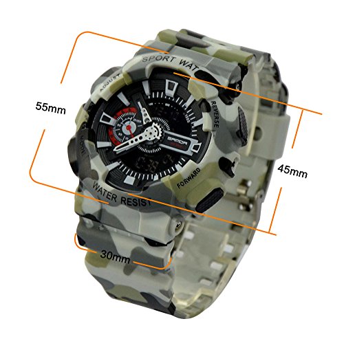 Highlights: 1. High quality Japan quartz movement makes the watch durable. 2. Unique design with sport style more fit for boys and men. 3. ABS Plastic & PU Plastic Watch Case, new style design and very popular. Specifications: 1. Style: Fashion & Casual 2. Materials: ABS Plastic & PU Plastic 3. Item type: wristwatch 4. Display way: Display time in numbers indicate the hour, minutes and seconds 5. Movement: Japan Original Digital Movement 6. Water resistant depth: 50 Meters(NOTE: Please Don't Press Any Key Underwater) 7. Dial Diameter: 45mm 8. Case Diameter: 55mm 9. Band Width: 30mm 10. Band With: 20mm to 29mm 11. Band Length: 26cm 12. Gender: Men or Boys 13. Item weight: 52g Package Contents: * 1 X Ideashop Dual Time Man Sport Watches * 1 X Gift Box Welcome to our store, may you have a pleasant shopping experience! Our products have been well tested, examined and packaged before sending off. Any problem please feel free to contact us first so that we can supply the best service for you.Feature