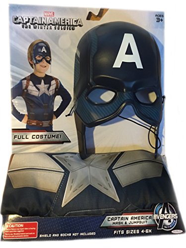 -. Feature : Captain America Mask and Jumpsuit. / Shield and Socks not included. / 2 pieces full costume! / Fits sizes 4-6X.