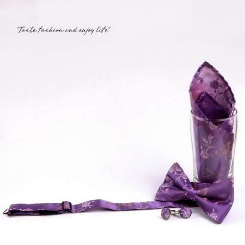 With exactly the same color and pattern cufflinks and hankchief, this bowtie set makes the perfect gift, and would certainly look stunning on any wedding daygroom.