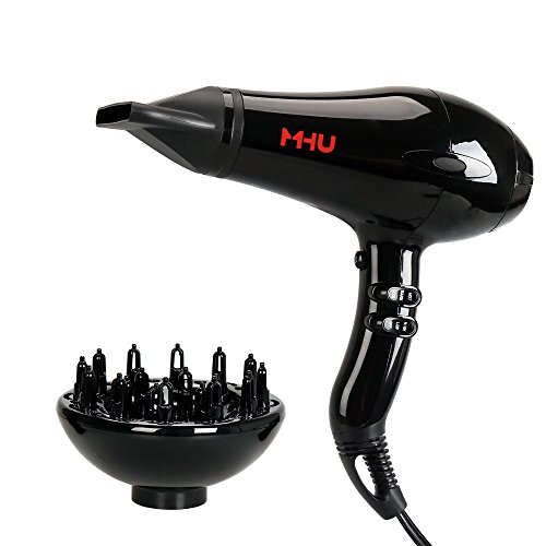 MHU 1875 Watts Pro Powerful Hair Dryer with Ceramic Ionic, Lightweight and Low Noise Salon AC Blow Dryer 2 Speeds 3 Heat Settings Dryer with Diffuser &...