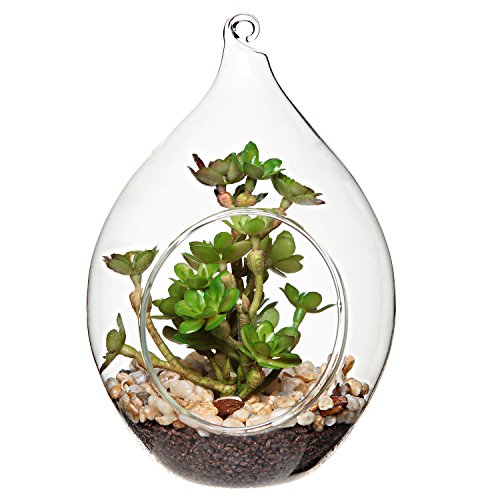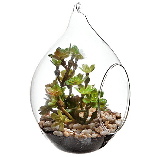 Freshen up your home decor with this charming and elegant artificial plant ornament. Made of clear glass in a stylish teardrop shape, this elegant globe is the perfect vessel to display the realistic-looking artificial succulent housed inside. A string or thread can easily be slipped through the glass loop at the top to turn this tabletop decoration into a hanging ornament ideal for any space, indoors or out. Bring sophisticated style and a touch of natural-looking greenery to your home with this glass artificial plant globe.**Official MyGift® product.**