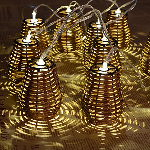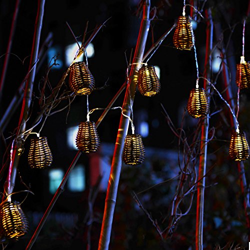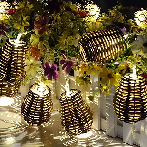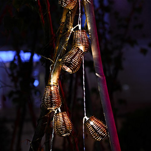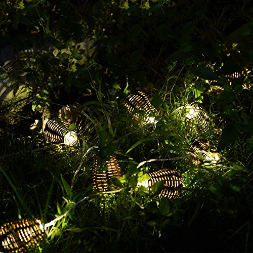- HIGH QUALITY RATTAN LIGHT - Beautifully designed patio string lights made by hand with high quality material: imitation rattan and iron that are lightweight, more durable and waterproof.