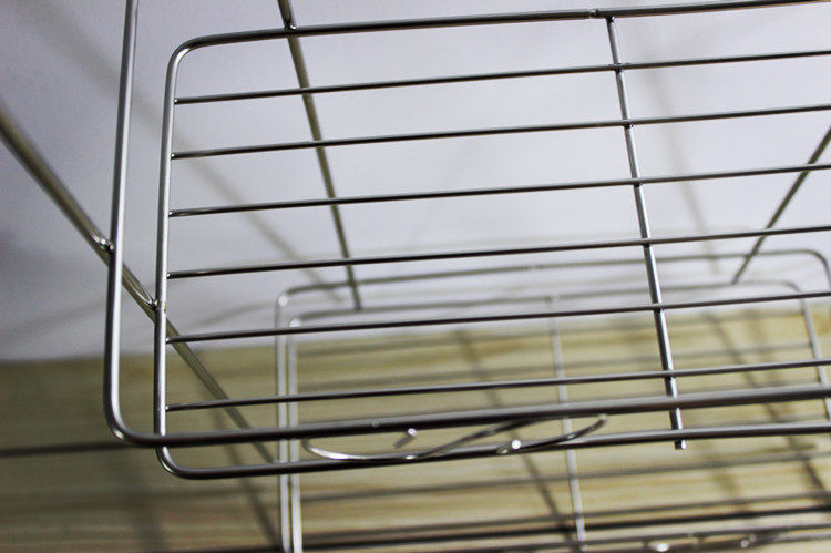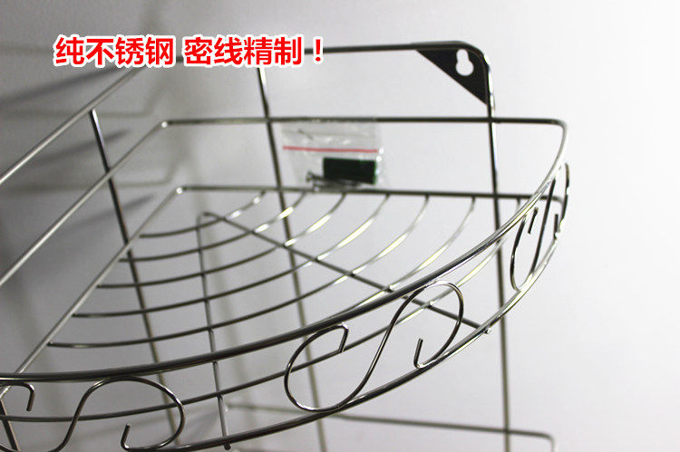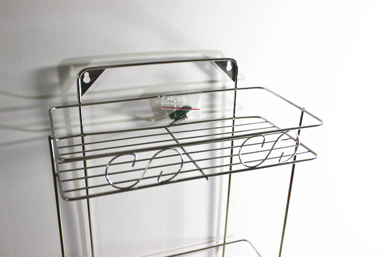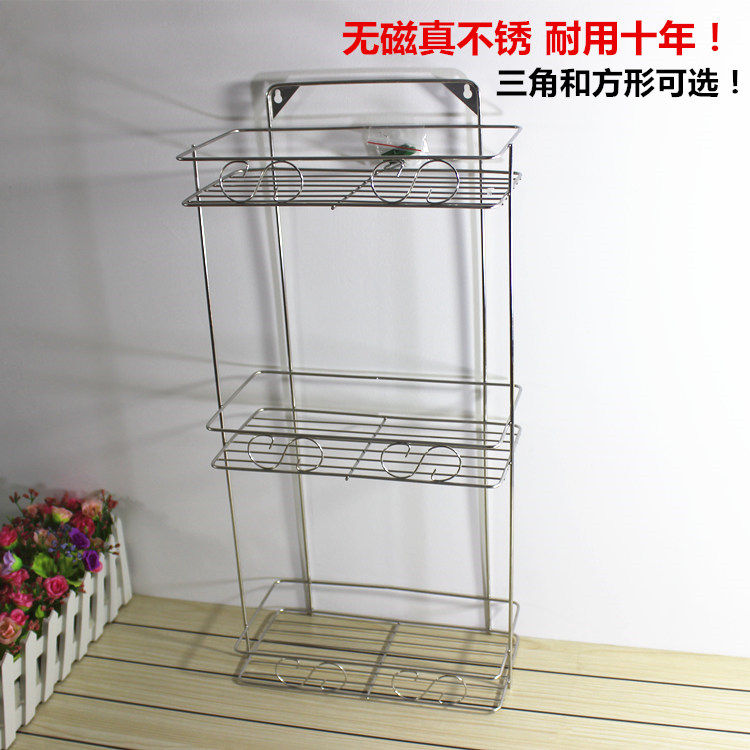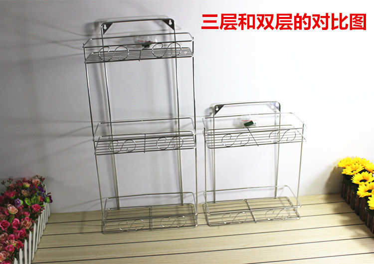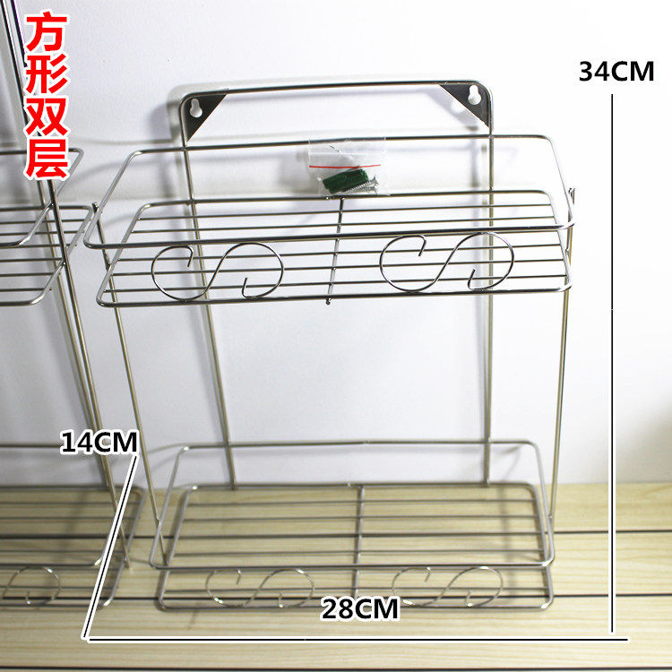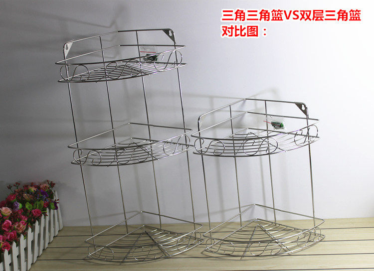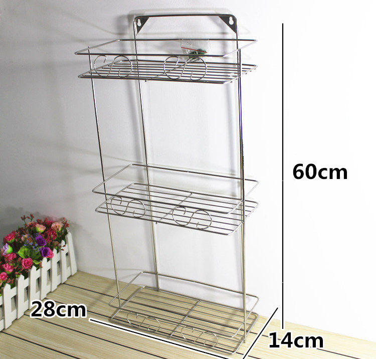 Material: stainless steelSize:Rectangular 2 layer 14*28*34cmRectangular 3 layer 14*28*60cmTriangle 2 layer 21*30*33cmTriangle 3 layer 21*30*53cm