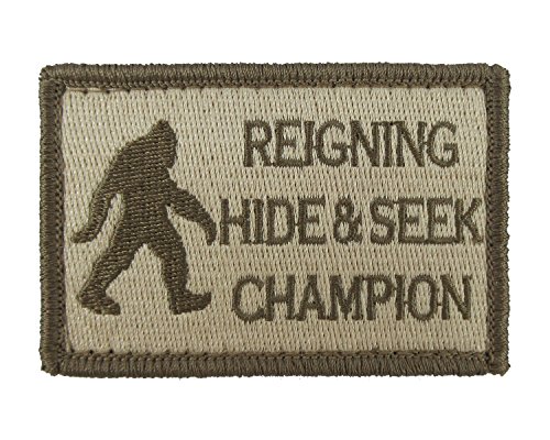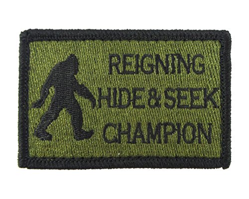 -. Title : Reigning Hide and Seek Champion Bigfoot Funny Velcro Fully Embroidered Morale Tags Patch