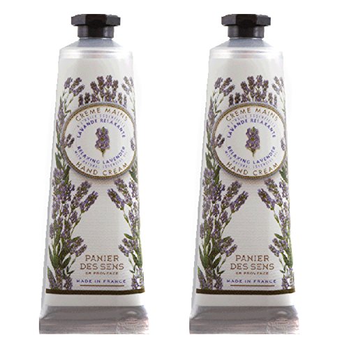 Panier Des Sens hand creams with natural lavender essential oils from Provence in "Relaxing Lavender" fragrance. You will receive a 2-pack that includes two 1-ounce tubes of hand creams.