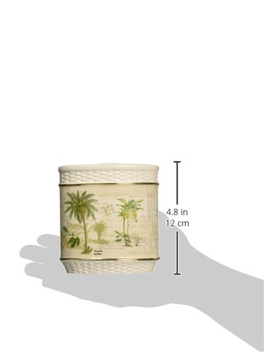 - Colony palm ceramic bath Accessories feature a beautifully detailed tropical scene with palm trees, antiqued writing and other design elements