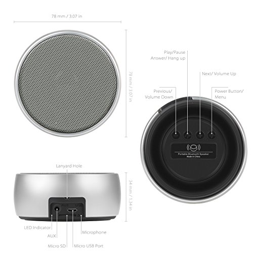 Vielseitige Kompatibilitat: Der Standard Bluetooth 2.1 stellt eine Kompatibilitat mit fast allen Bluetooth-fahigen Stammgeraten sicher. Ein Anschluss fur 3,5 mm Audiokabel und ein SD-Kartenschlitz sind in den Lautsprecher integriert.