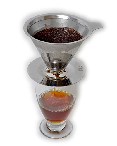 Pour Over Coffee Dripper by Silly Fox. The Permanent Reusable Paperless Coffee Cone Filter. Made of Double Mesh Stainless Steel. The Clever Coffee Dripper