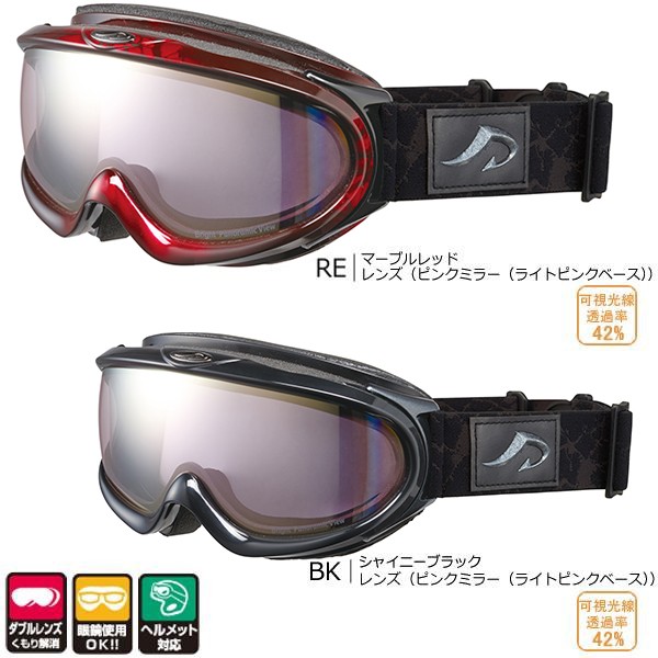スキーやスノーボードなど、冬のスポーツに最適でおしゃれなゴーグルです!レンズは二重構造で、外気とゴーグル内の温度差を小さくした曇りにくいダブルレンズを使用しております。 |