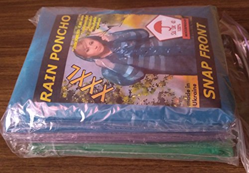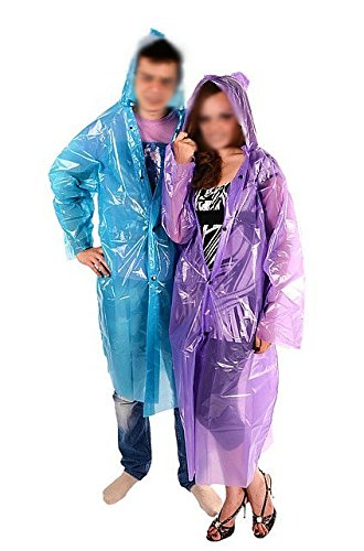 Snap front portable raincoat Reusable Rain poncho with Hood and Sleeves for men and women, 6 pack, 2 colors each, green, blue and purple, one size fits all