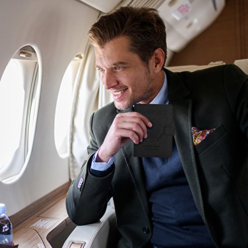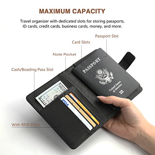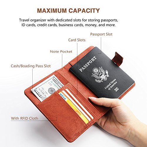 Product Description VIVEFOX leather passport holder comes with a safe stap, which can keep your cards, cash, passport etc. organized in it. VIVEFOX passport holder comes with RFID Blocking feature. Feel secure knowing that wherever you are in the world, your personal information cannot be scanned by electronic pickpocketing thieves. This passport holder designed with 4 card slots, 1 passport slot and 2 pocket, you can easily keep your cards, cash, passport and boarding pass in this holder. Our leather passport holder is in an unisex design. It's a travel accessory designed for men and women, take it and enjoy your no worry travel. Qualified Material and Stitching: Provides a comfortable feeling and protection for passport, durable for international trips. 0