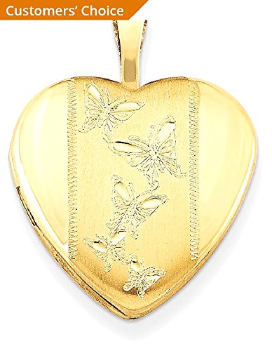 ICECARATS DESIGNER JEWELRY GOLD PLATED 925 STERLING SILVER 16MM BUTTERFLY HEART PHOTO PENDANT CHARM LOCKET CHAIN NECKLACE THAT HOLDS PICTURES