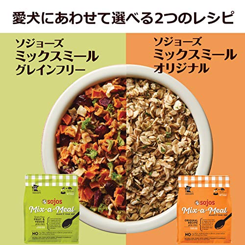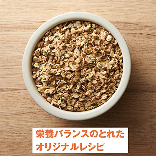 原材料:ロールドオーツ、ライ麦フレーク、大麦フレーク、にんじん、乾燥ケルプ、パセリ、キャロブパウダー、乾燥バジル、ビタミン類(E、パントテン酸、B2、D3、B6、葉酸)、ミネラル類(リン酸カルシウム、硫酸亜鉛、フマル酸第一鉄、硫酸銅)