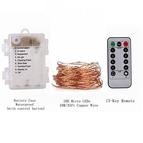 LED String Lights Battery Operated,33ft 100 LED Waterproof Decorative Lights,Starry Fairy Lights with Remote for Christmas Bedroom Patio Yard, Wedding,Parties(Copper Wire Lights, Warm White)