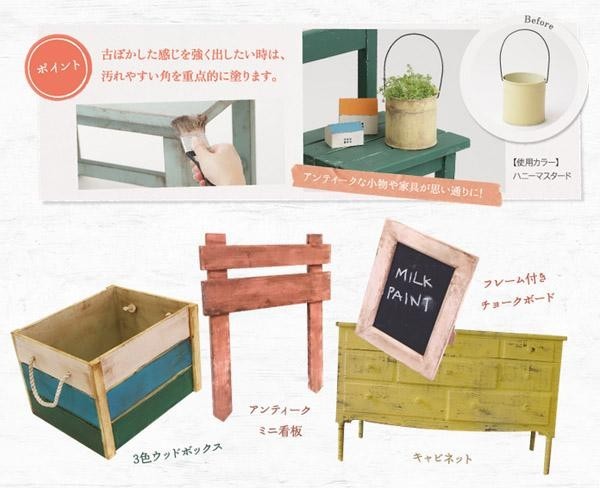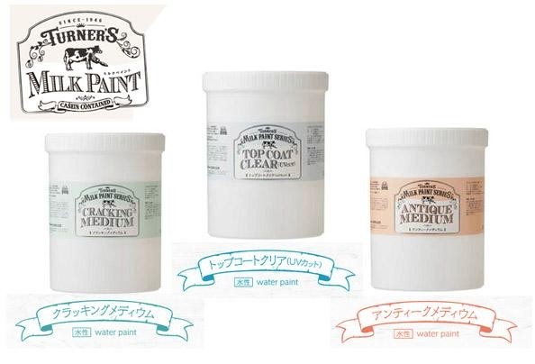 | ●「クラッキングメディウム」でひび割れペイントが簡単に♪ | | ●「アンティークメディウム」で簡単に古ぼけた風合いに!! | | ●「トップコートクリア」で手垢や紫外線から作品を守り、耐久性UP☆ |