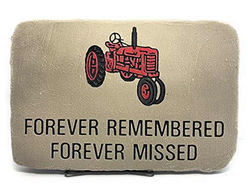 Sympathy Plaques RED Tractor Forever Remembered - Forever Missed; Memorial Stone; 10"x15" Shale; Stand Included